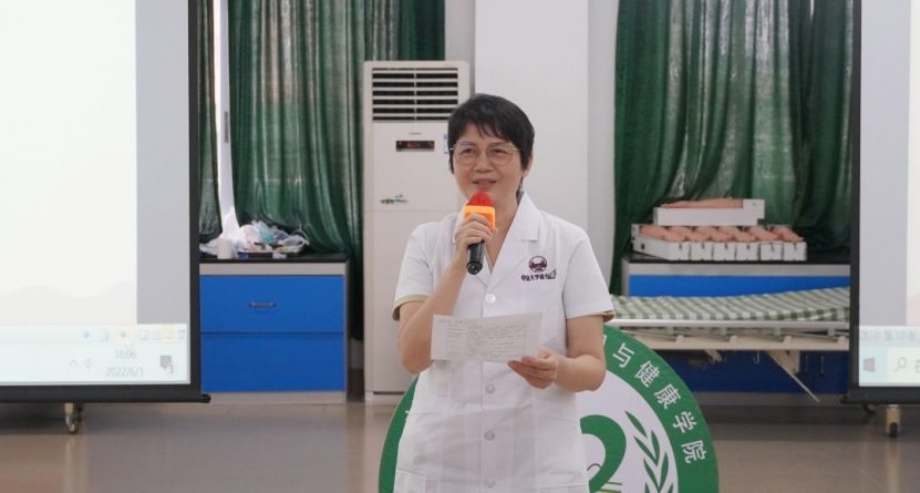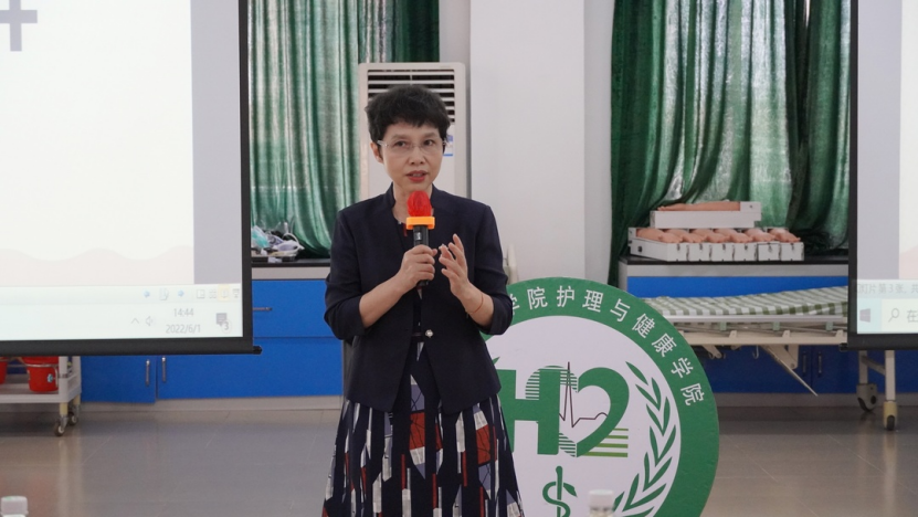 方海云院长致辞,她说道,本次比赛旨在考察学生的临床思维、应急判断、团队合作等综合能力,同时能够有效展现教学成果。她希望通过举办比赛的形式,激励同学们更好地学习技能,掌握专业知识,夯实护理基础,为临床实践做好充分准备,敬职敬责。