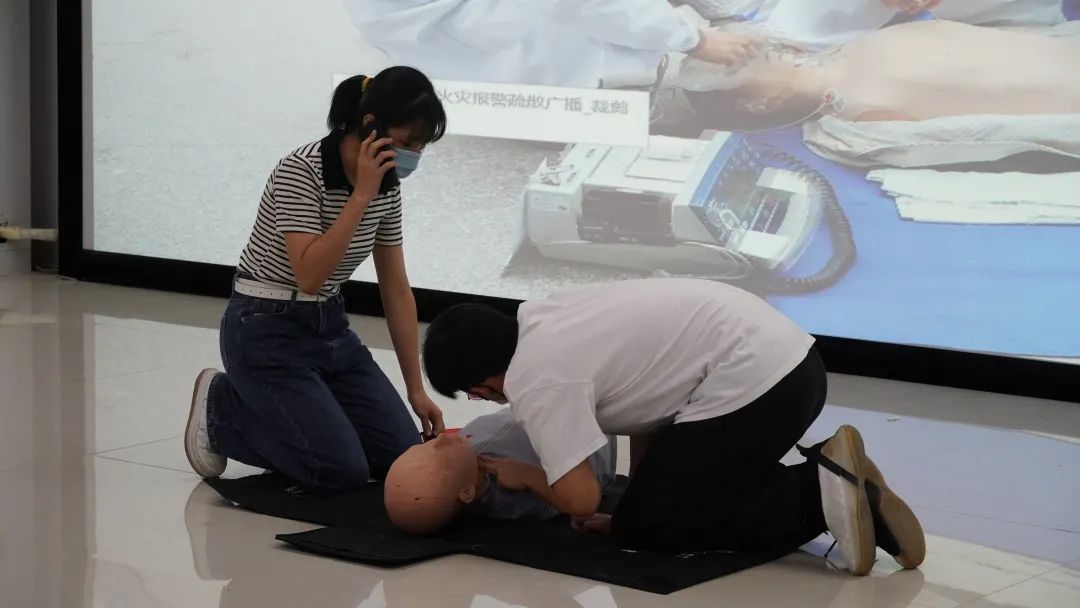 活动伊始,学员们通过观看视频,回顾了自己在励能学堂一个月以来学到的专业知识和技能操作。同时以情景演绎的方式,模拟医护人员面对不同伤者采取不同急救方法的场景,演示内容包括心肺复苏、海姆立克急救法、外伤急救三种操作。
