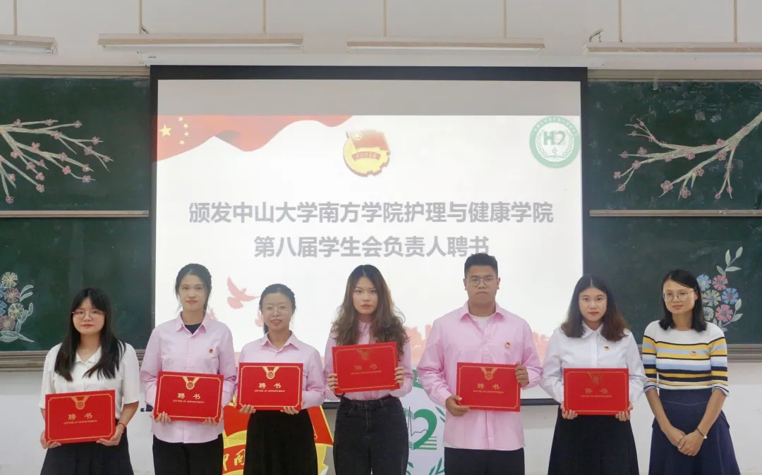 林晓兰老师为中山大学南方学院金年会jinnianhuicom第八届团总支学生会干部颁发聘书以及为优秀干部颁发荣誉证书。田珍珍老师为中山大学南方学院金年会jinnianhuicom第八届团总支学生会优秀部门、优秀干事及优秀工作人员颁发荣誉证书。