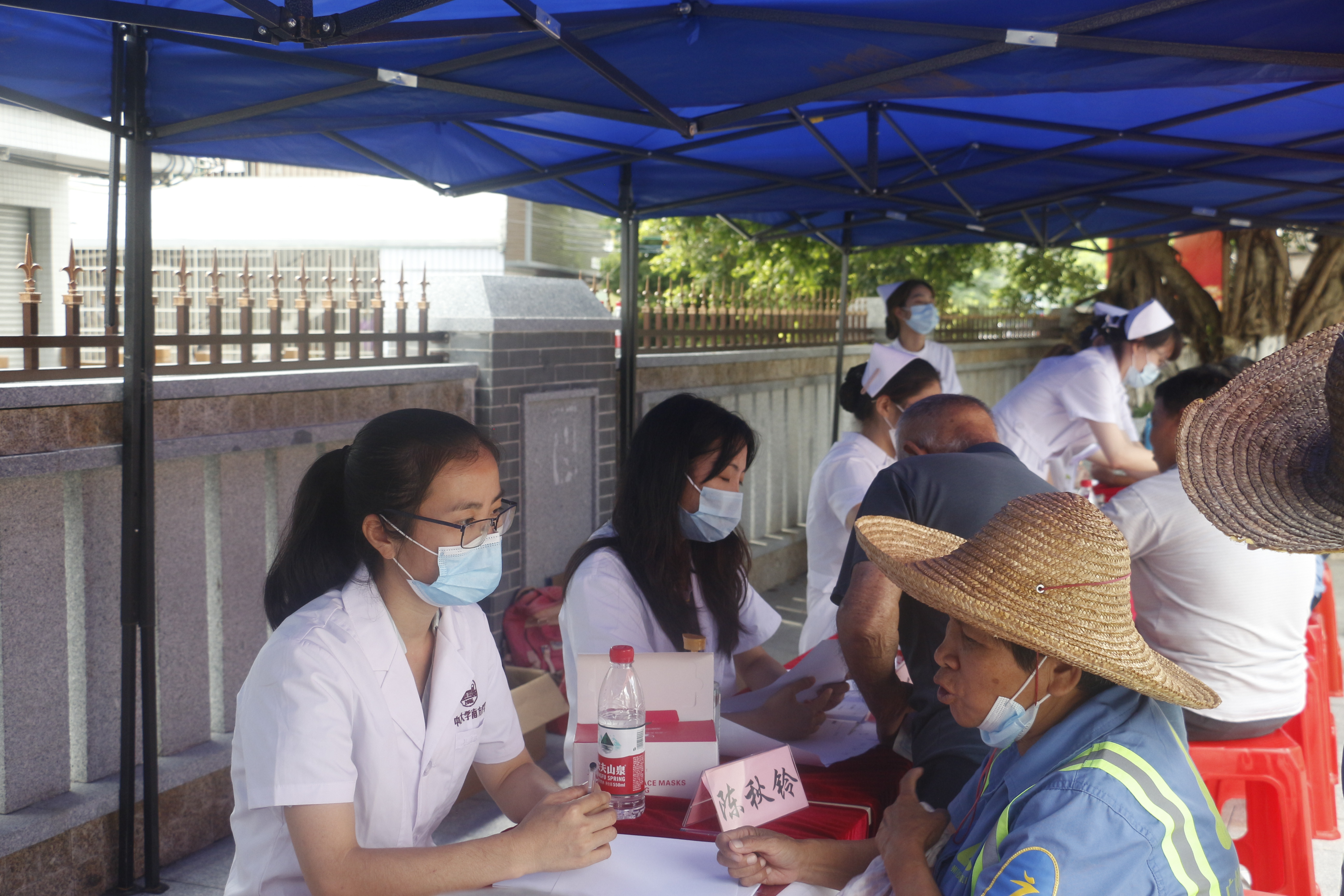 金年会青年骨干教师孙振华老师耐心地为当地村民进行高血压、糖尿病等的防治咨询,尤其提醒血压较高的老年人出现头痛、呕吐、头晕等症状,需尽早到医院就医。