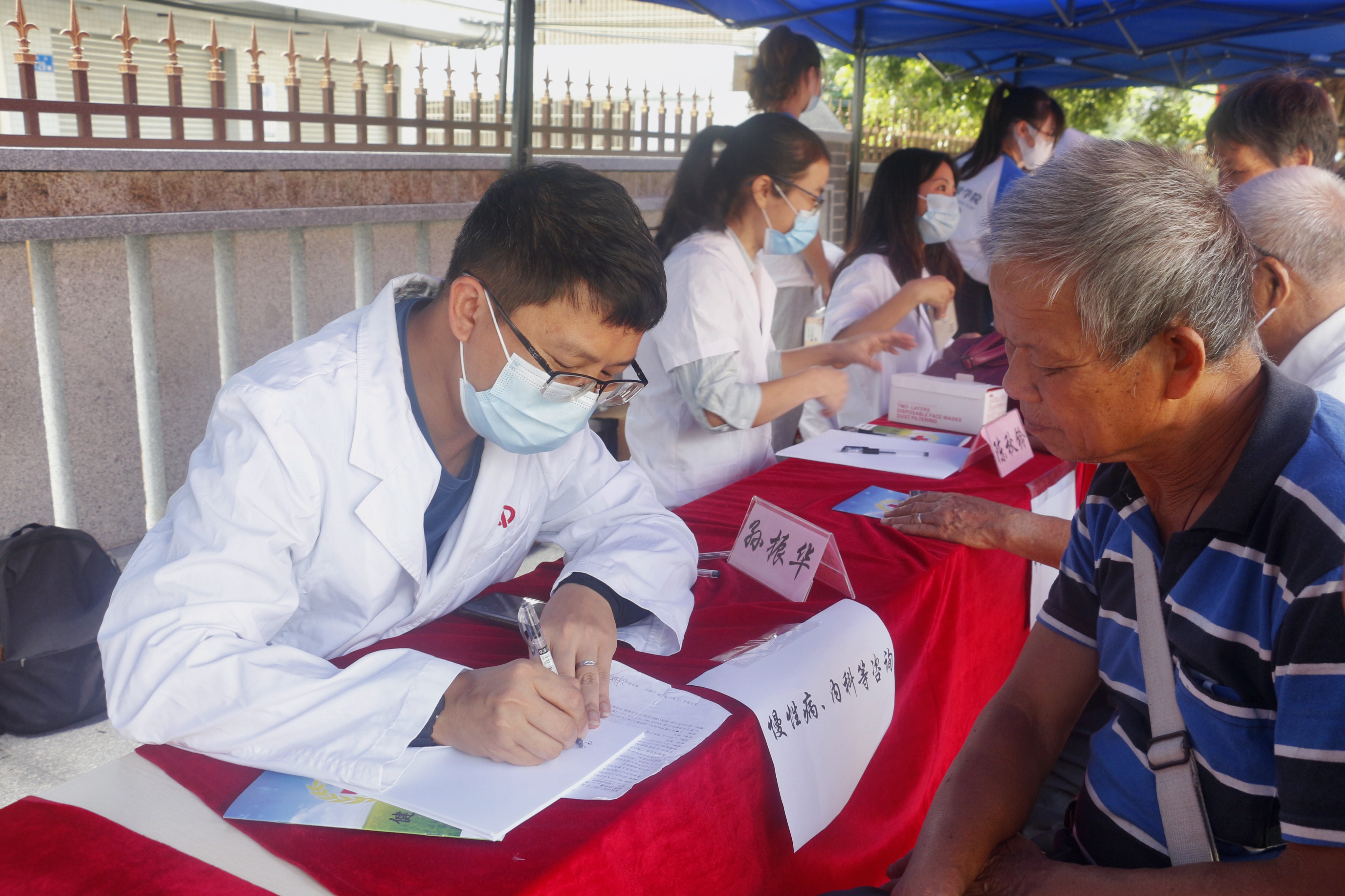 现场负责健康咨询的老师们耐心细致地对村民提出的有关健康问题答疑解惑,并提醒他们发现问题及时到正规医院检查就医。