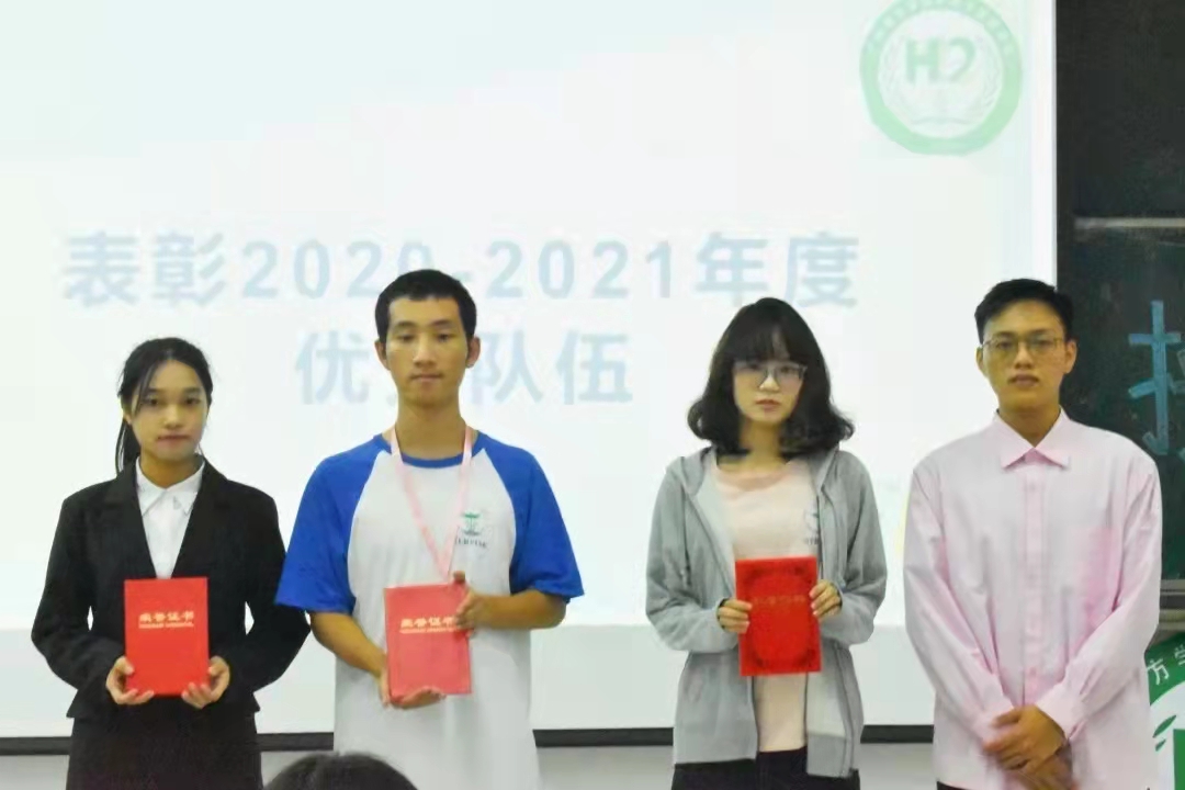 曹黎彬同学为中山大学南方学院金年会jinnianhuicom2020-2021学年艺术团优秀队伍、优秀队长及优秀队员颁发证书。