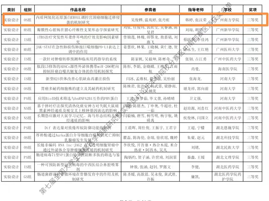 金年会jinnianhuicom高度重视此次竞赛,认真筹备、精心组织,指导老师及全体参赛队员充分发挥主观能动性,积极培训,付出了艰辛努力。经过激烈比拼,吴俊桦、温苑婷、张丹虹团队的《内质网氧化还原蛋白ER01L调控宫颈癌细胞迁移侵袭的机制研究》(指导老师为韩婷、张汉荣)在中南赛区参赛作品中脱颖而出,获得三等奖的好成绩。
