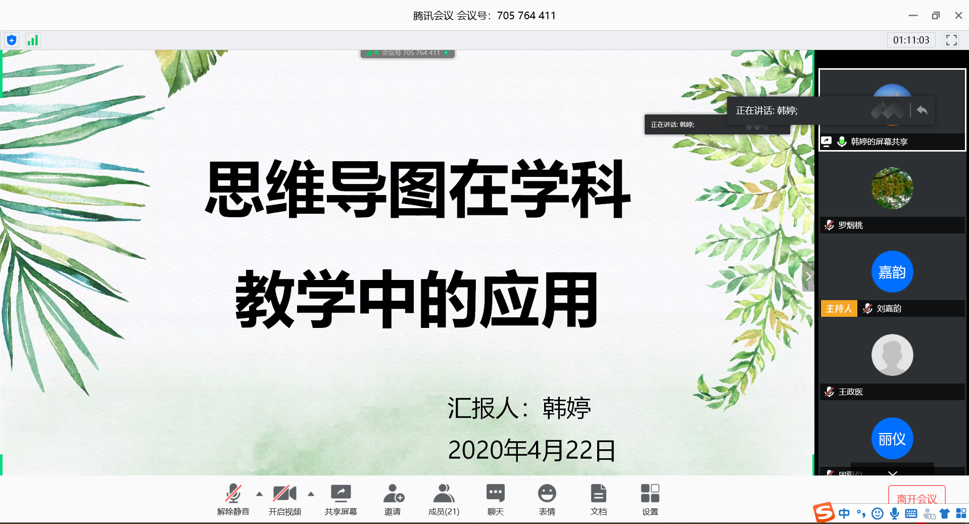 为认真学习贯彻习近平总书记关于坚决打赢疫情防控阻击战的重要指示精神,及时落实教育部及学校疫情防控期间开展线上教学的要求,金年会jinnianhuicom第一时间成立了线上教学工作领导小组,制定了《金年会jinnianhuicom线上教学工作方案》。为了保证线上教学质量,持续提升教师专业能力,4月22日下午,金年会jinnianhuicom开展了线上教师业务学习——思维导图在教学中的应用。本次业务学习采取线上的形式进行,由韩婷老师主讲,金年会jinnianhuicom全体教师参加。