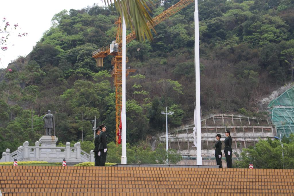 升旗仪式伊始,范丽红老师从讲思想促进步、讲学风促能力、讲卫生防疾病、讲安全防诈骗四个方面向在场同学们提出了期望和要求。伴随着激昂的《义勇军进行曲》的响起,五星红旗冉冉升起,承载着新的希望,激励着同学们奋发进取的斗志。随后,伴随《中山大学南方学院校歌》响起,升中山大学南方学院校旗,白色的旗帜承载着中山大学南方学院学子迸发向上的激情。两面旗帜迎风飘扬,五星红旗与橄榄绿在阳光的照耀下相互映衬,庄严而神圣。
