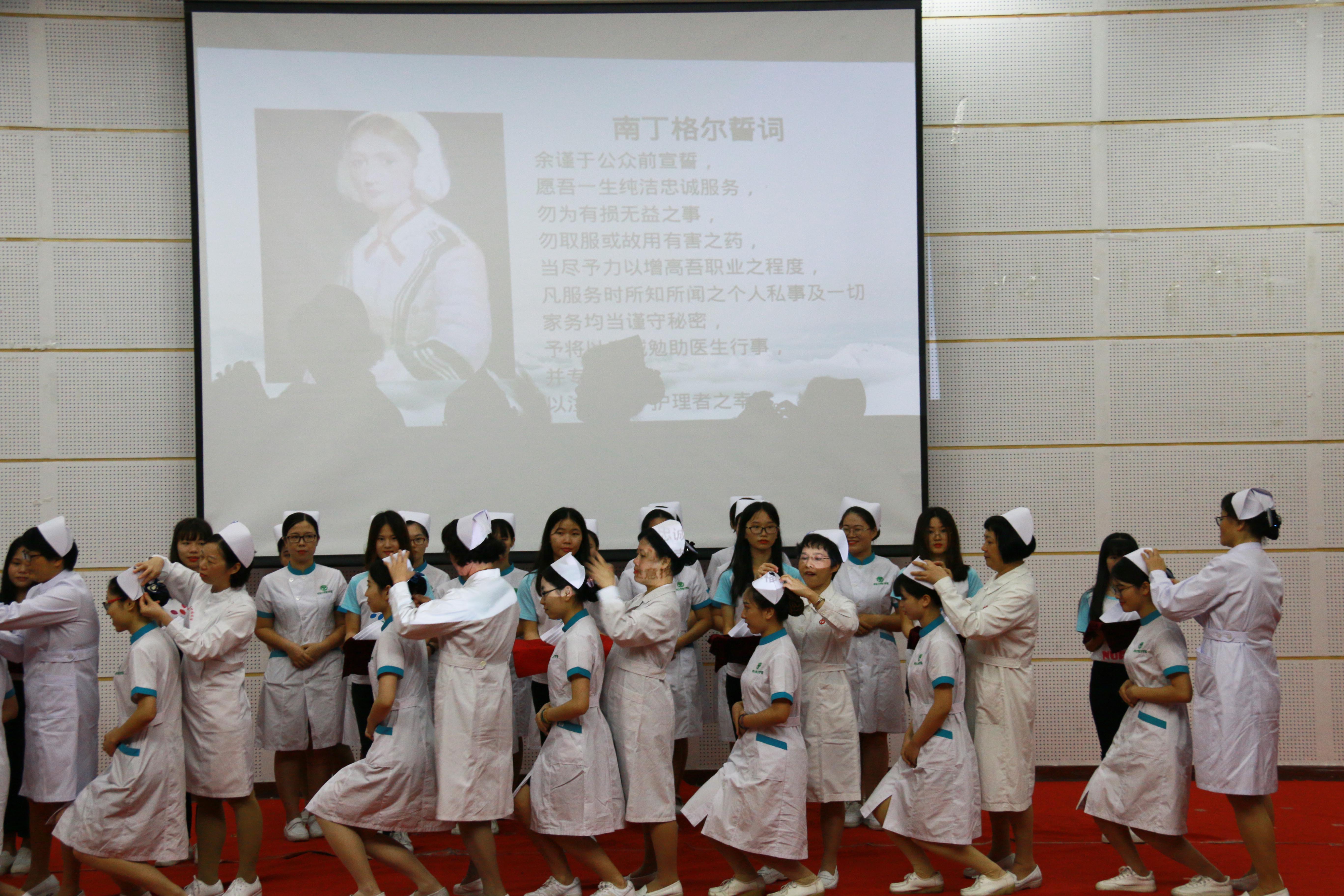 开场时,一支 “Good boy”的精彩舞蹈瞬间点燃全场,激情澎湃的舞蹈队员们在台上尽情舞动着青春,无不展示着良好的精神风貌,将会场气氛活跃起来,授帽仪式正式拉开帷幕。随即,唐燕副校长为应届毕业生致辞,希望我们能继续提高护理技能,并学会感恩。之后,陈华丽老师为大家致辞,她表示,护理事业光荣至上,我们要细心耐心的对待每一位患者,为人类健康服务。紧接着,2017届毕业生代表黄晓丽上台讲话,感恩老师们的指导,感谢同学们的陪伴。接着,唐燕副校长和陈华丽副主任为优秀毕业生黄晓丽,庞敏敏,张楚倩优颁奖,王琳琳校长助理和方海云主任为肖苗荣,傅英志,马燕貂等13名优秀实习生颁奖。十大歌手马敬楷带来演唱《一路上有你》以及系舞蹈队带来《美人吟》,为毕业生未来的旅途送上美好的祝愿;舞蹈队带来话剧《南丁格尔》,向观众传播了她的奉献精神。