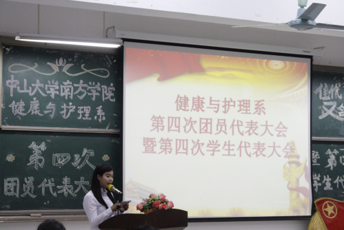 伴随着悠扬的团歌,林晓兰为本次大会致辞,会议正式开始。首先健康与护理系副主席岑海嫦作团学代表大会会议筹备工作报告。报告完毕后,健康与护理系团总支书记朱海燕、学生会主席廖淑霞以及秘书长余海彬分别对2015-2016年度作团总支报告、学生会报告以及学生会财务工作报告,并通过大会审议与表决。