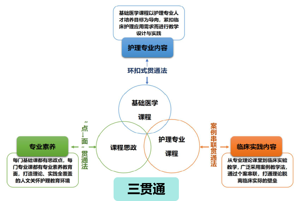 (2)基础医学与护理专业课程“环扣式”贯通:依托本学院内设的基础医学教研室,设计环扣式贯穿护理专业课程的特色基础医学实验教学体系。